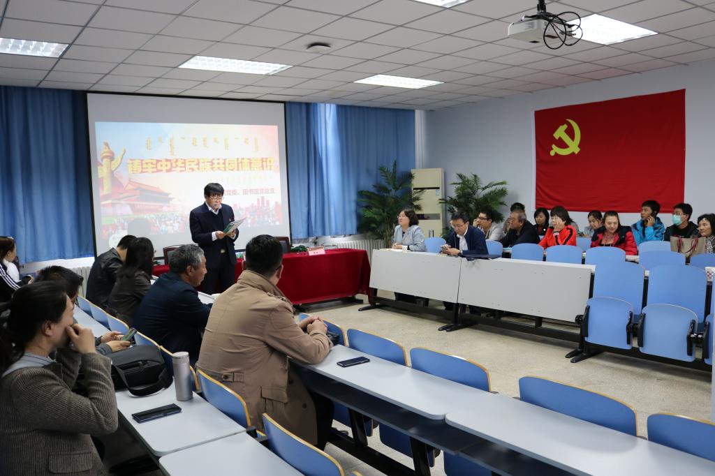 响应自治区、公司关于紧紧扭住、铸牢中华民族共同体意识这条新时代民族工作主线的指示精神,2020年10月8日下午,公司党委与图书馆党总支在赛罕校区图书馆共同联合开展了“铸牢中华民族共同体意识”主题党日活动。