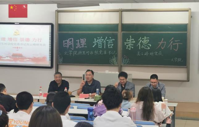 5月28日晚,EMC易倍体育在行知楼118教室举办了“人文之夜”第十七次读书报告会,读书会的主题是:“明理、增信、崇德、力行——对话公司党委副书记高云峰研究员”。本次读书会邀请到了公司党委副书记高云峰研究员,EMC易倍体育党委书记高林广教授、教工一支部书记刘伟博士,以及EMC易倍体育研究生、本科生共200余人参加了本次活动,赵玉龙博士主持了会议。