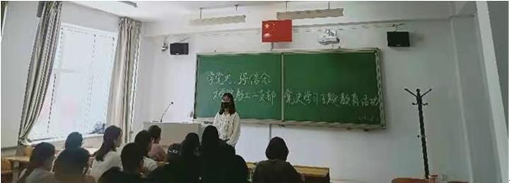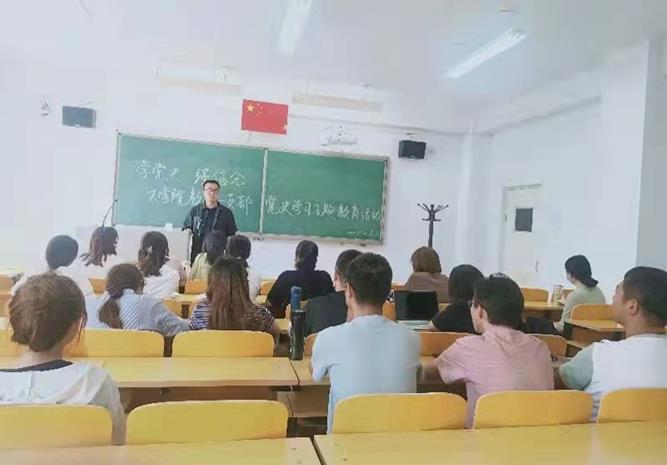 2021年9月3日,教工二支部支委杨永红博士在盛乐校区行知楼214室组织开展了“学党史,强信念”——EMC易倍体育教工二支部党史学习教育。2019级普师三班的预备党员和入党积极分子参加了活动。