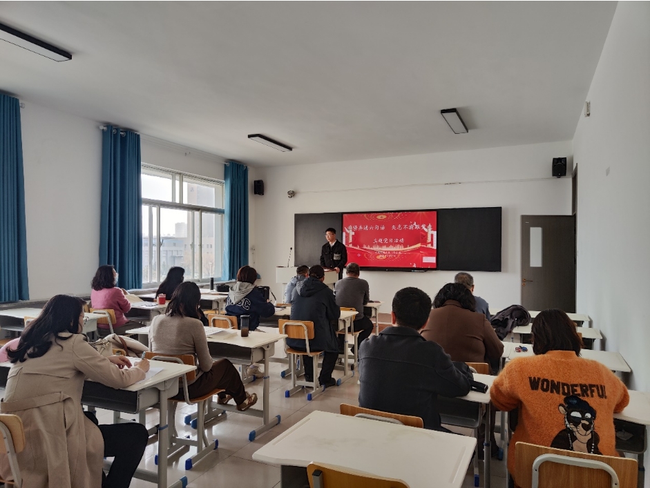 党日活动分两个阶段进行,第一阶段为书记讲党课活动。支部书记赵玉龙结合党的二十大精神,讲授了习近平总书记关于教育的重要论述,他指出,培养什么人,是教育的首要问题。不管什么时候,教育要始终坚持为党育人的初心不能忘、为国育才的立场不能改。他强调,作为教师,我们要教育引导员工树立共产主义远大理想和中国特色社会主义共同理想,使员工们认识到,只有社会主义才能救中国,只有中国特色社会主义才能发展中国,才能实现中华民族伟大复兴。