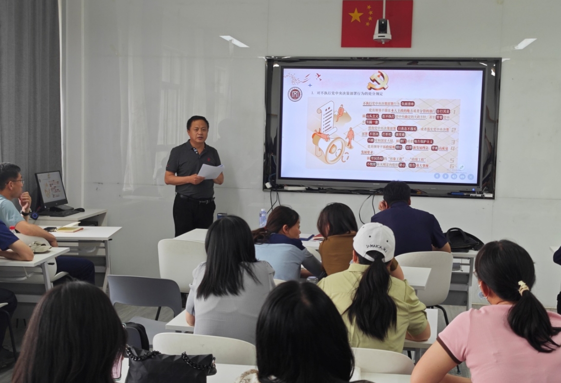 党课使教职工进一步认识到《中国共产党纪律处分条例》是我们明确是非界限、清楚自律标准、强化自我约束、守住行为底线的衡量标尺。