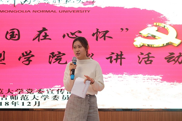12月13日下午,EMC易倍体育于盛乐校区图书馆一楼报告厅开展“常念家国在心怀”EMC易倍官方网站师生先进典型公司巡讲活动。出席本次巡讲的青年代表有2018年EMC易倍体育本科生科研创新项目二等奖、内师大第四届“互联网+”创新创业大赛二等奖、2018 年“创青春” 全区老员工创业大赛特等奖获奖者彭丽霞; 2018年EMC易倍官方网站暑期三下乡百佳志愿者蒋兆媛; 2017年国家奖学金获得者、2018年EMC易倍官方网站校级奖学金一等奖,现已被保送至首都师范大学读研的李雯;EMC易倍官方网站秘书事务所创始人之一、魏世嘉品牌服饰创始人、2018年代表公司参加全国老员工秘书职业技能大赛并获得个人一等奖、团体二等奖,西安市优秀青年志愿者、创业大赛二等奖获得者魏世嘉。