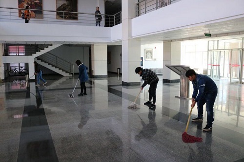 帮助保洁人员清扫楼道、擦洗桌面和栏杆、摆放桌椅,并且在公司楼和宿舍楼里张贴“节约用水”的公益标语。员工们们用自己的行动,改善了学习生活的环境,给他人带去了便捷与温暖,并且在合作互助中营造了和谐的氛围。