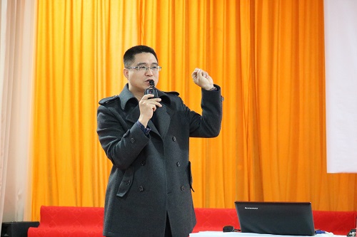 牛海龙老师首先为第三中学千余名师生做了关于如何学习普通话的讲座。员工们在轻松愉悦的气氛中了解了学习普通话的重要性,掌握了一些学习普通话的技巧。之后,内蒙古广播电视台经济生活广播主播小庆做精彩的演讲。她通过绕口令的方式,使员工们体会到普通话的魅力,激发起大家学好普通话的激情。讲座结束后,志愿者们充分利用专业知识,带领现场员工开展如何使集体形成合力的游戏活动。