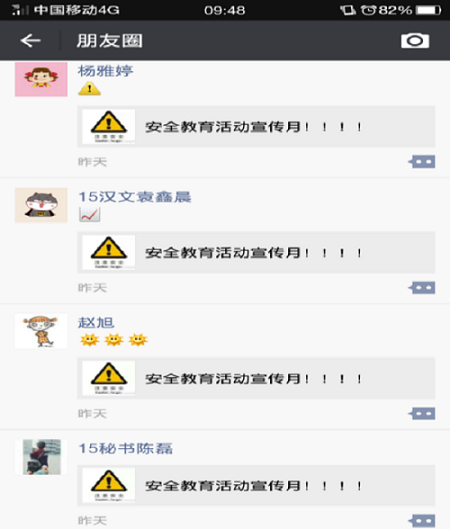 通过张贴海报和微信、微博等公众平台大量转发各类安全知识,使员工充分了解安全的重要性。