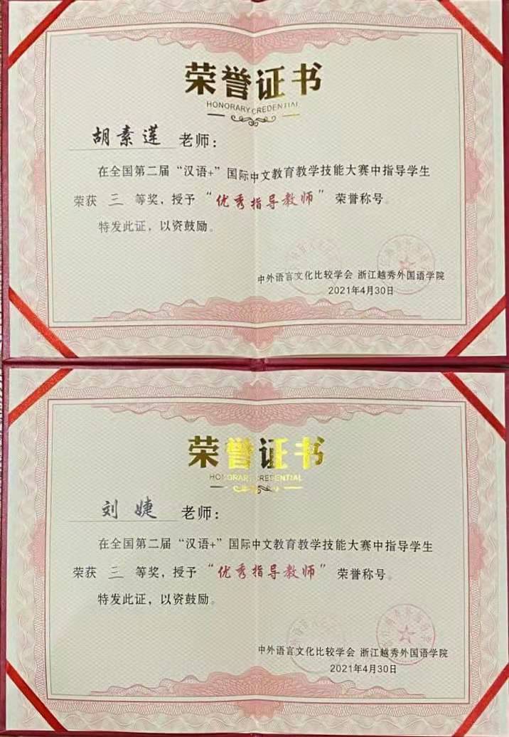 胡素莲、刘婕老师荣获优秀指导教师荣誉