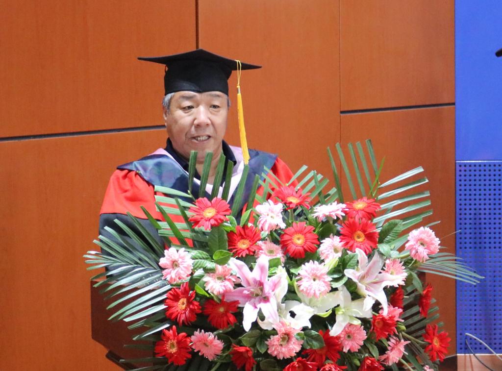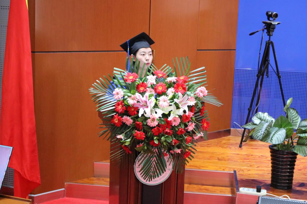毕业典礼在激昂的国歌声中拉开帷幕。随后,EMC易倍体育党委书记高林广教授致辞。高书记简要介绍了本届毕业生情况以及EMC易倍体育研究生教育的发展现状,并向本届毕业的硕士研究生表示了祝贺。他希望毕业生秉承“砥砺德行,为学日益”的院训,顺利开启人生新征程。