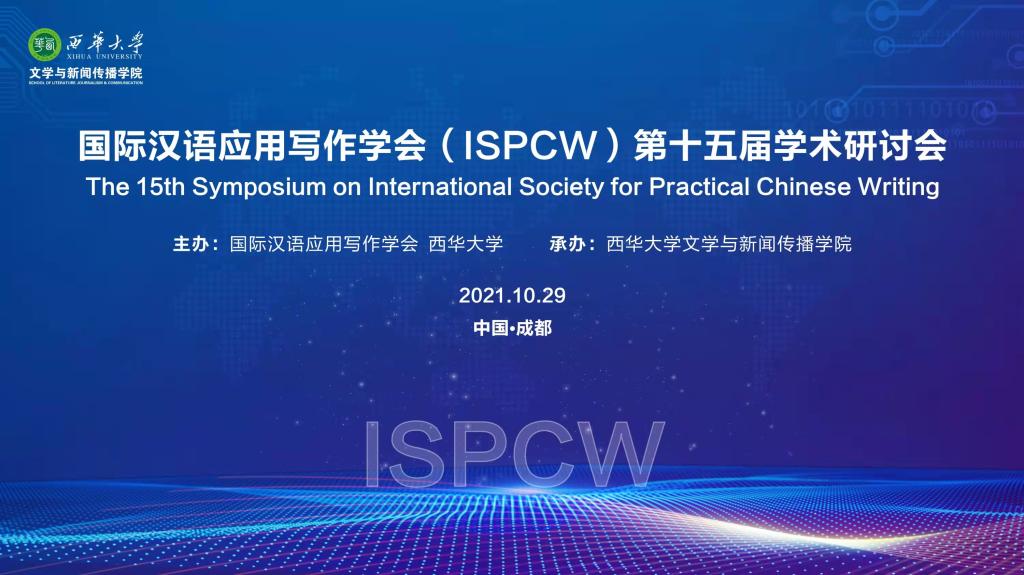 10月30日至31日,国际汉语应用写作学会第十五届学术研讨会在成都召开。本届研讨会由国际汉语应用写作学会主办、西华大学文学与新闻传播公司承办。来自内地、香港、澳门、新加坡等多地的学者参加了本届研讨会。因疫情故,本届研讨会采用线上与线下相结合的方式参会。公司万奇教授是国际汉语应用写作学副会长,应邀以线上交流的方式参加了研讨会。