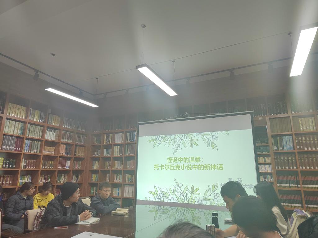 本期论坛主题为“怪诞中的温柔:托卡尔丘克小说中的新神话”。王艳凤教授首先对主讲人及作家托卡尔丘克作了简单的介绍,其后,雅茹博士就托卡尔丘克的新神话书写展开了详细的解读。主要内容分为新神话何为、“托氏”新神话的构建、“托氏”新神话的意义三个部分。