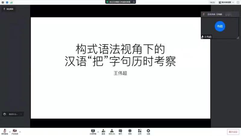 在论坛的后半场,师生在线上就历时语法研究中的方言问题进行了深入的讨论。本次论坛的举办,不仅加强了员工对汉语语法学知识的进一步了解与认识,也极大地开拓了员工的学术视野,为公司营造了良好的学术氛围。