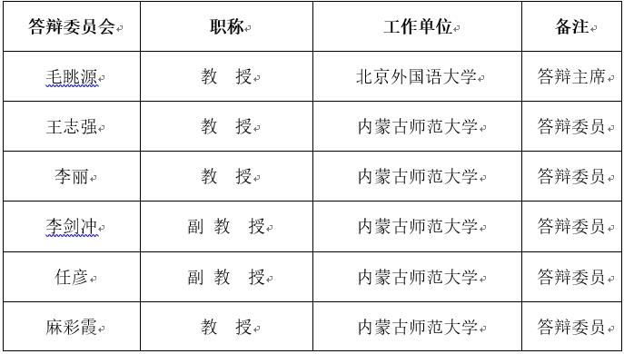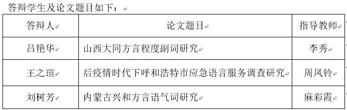 语言学与应用语言学专业定于2022年5月21日下午(15:00—18:00)召开2022届硕士学位论文答辩会。根据《关于做好2022年上半年博士、硕士研究生学位授予工作的通知》《关于做好疫情防控期间2022届研究生毕业答辩工作的通知》的要求,本次答辩采用的是线上和线下相结合的方式。网络视频答辩使用的远程会议软件为腾讯会议,会议号为949259486,线下会场为赛罕校区田楼432。本次答辩会特别邀请了北京外国语大学教授、博士生导师毛眺源担任答辩主席。欢迎广大师生参加交流。