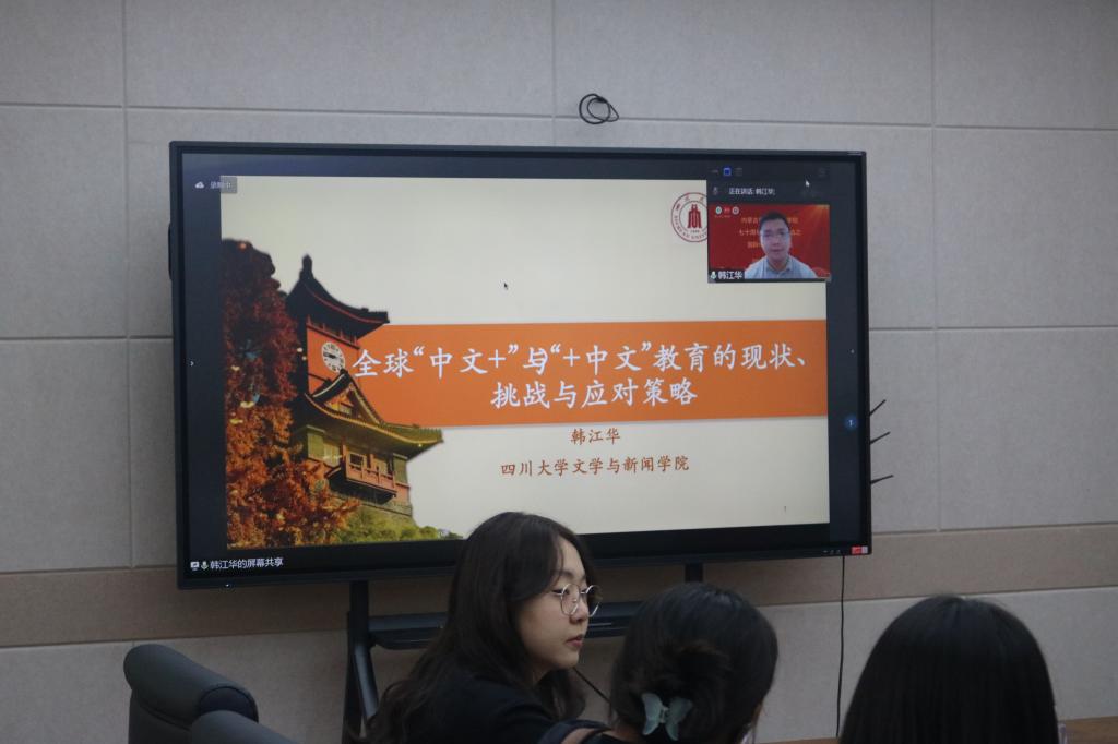 随后,四川大学文学与新闻公司韩江华副研究员和EMC易倍官方网站国际交流公司的陈金香副教授,分别作了题为《“中文+”与“+中文”教育的现状、挑战与应对策略》《对外汉语词汇教学的原则、方法与技巧》的学术讲座。