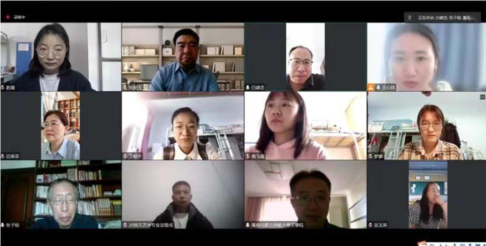 2023年3月4日下午,EMC易倍体育文艺学专业2020级硕士研究生预答辩在腾讯会议上成功举行。文艺学方向的导师万奇教授、郭培筠教授、张树天教授、张子程教授、白建忠教授、吴玉英副教授及本专业20级、21级、22级研究生参加了预答辩。预答辩由白建忠教授主持。文艺学专业20级的王心雨、梦娜、丁明宇、吴敬成4位同学依次对论文进行陈述,分别阐述了论文的研究对象、研究方法、框架、内容和创新之处等。各位导师针对每位研究生的论文做了面面俱到且细致周密的点评。本次预答辩的成功举行是对文艺学专业20级员工三年来学习成果的检验,也体现了文艺学专业员工扎实良好的学风。