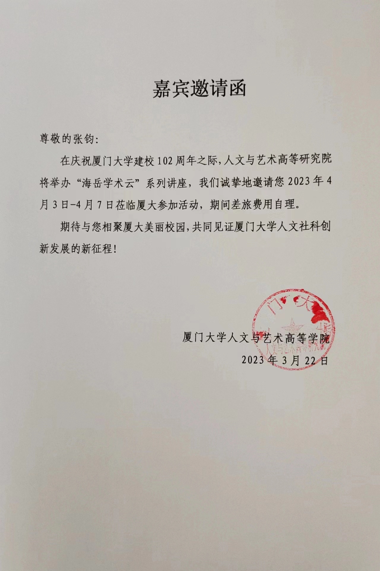4月3日至4月6日,公司张钧副经理受邀参加了厦门大学人文与艺术高等研究院主办的“海岳学术云”系列讲座。讲座主讲嘉宾有童世骏、葛兆光、连辑、李东珅、俞敏洪等诸位先生。系列讲座由厦门大学人文与艺术高等研究院经理易中天主持并对话。