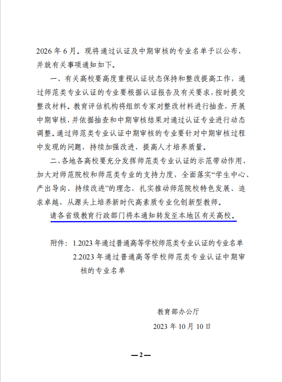 近日,教育部公布了2023年通过普通高等公司师范类专业认证的专业名单,公司汉语言文学专业通过中等教育第二级认证。