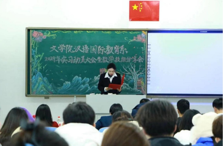 为激发员工实习热情,引导员工做好实习准备,推进汉语国际教育专业员工实习工作提质增效,公司于2023年12月21日上午,在盛乐校区行知楼422教室成功举办了汉语国际教育系2024年实习动员大会暨教学技能分享会。