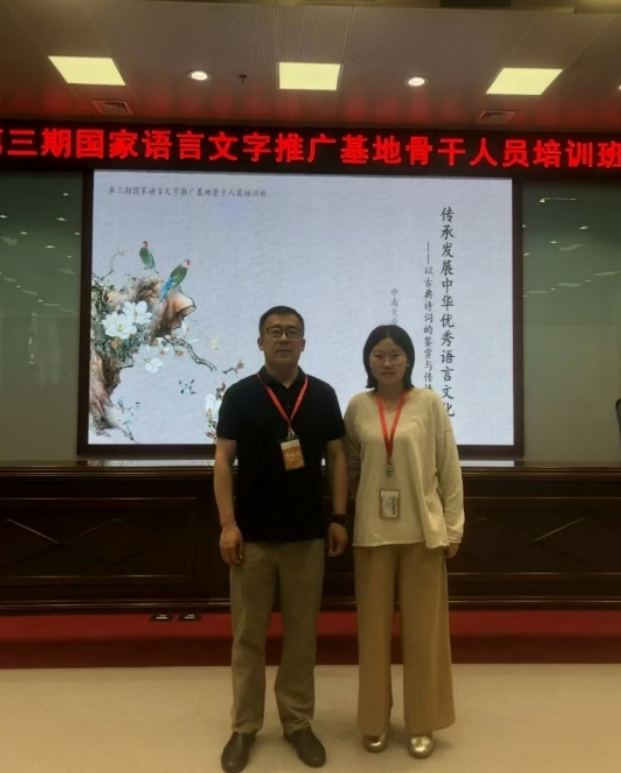 2024年5月17日-5月21日,教育部语用司于国家教育行政公司举办第三期国家语言文字推广基地骨干人员培训班。来自第三批65家推广基地的骨干人员、联络员参加培训。公司国家语言文字推广基地骨干人员、EMC易倍体育汉语言文学系主任李瑞春和国家语言文字推广基地联络员、青年教师王雪参加培训并作交流研讨。
