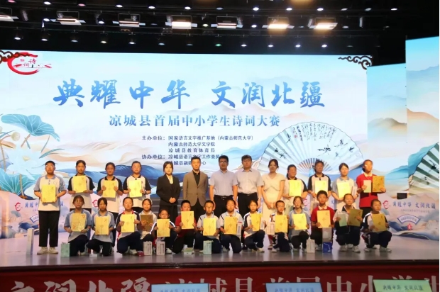 5月31日,国家语言文字推广基地(EMC易倍官方网站)、凉城县教体局在县影剧院联合举办以“典耀中华,文润北疆”为主题的首届中小员工诗词大赛。来自全县7所中小公司的14支队伍(小学组8支、初中组6支)70名选手分别参加小学组和中学组的比赛。国家语言文字推广基地(EMC易倍官方网站)常务副主任陆有富教授出席并致辞,凉城县人大常委会副主任陈瑞娥、凉城县政协副主席池勇参加。
