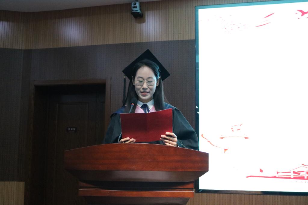 本科生毕业生代表:2020级汉语国际教育专业的唐艺璇同学发言