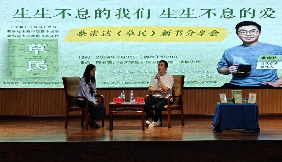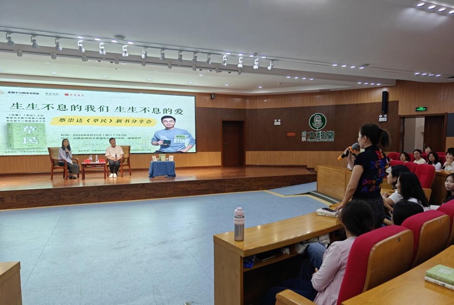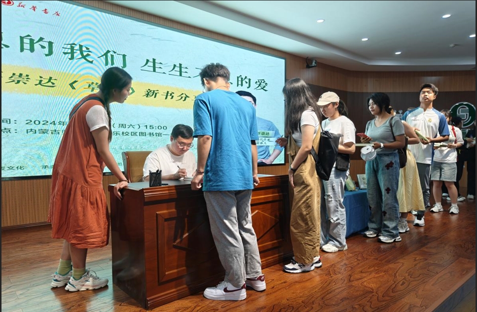 8月31日下午,在EMC易倍官方网站盛乐校区图书馆一楼报告厅,EMC易倍体育与内蒙古新华书店有限责任公司、内蒙古蒙新图书连锁有限公司、果麦文化联合举办主题为“生生不息的我们 生生不息的爱”——蔡崇达《草民》新书分享会。