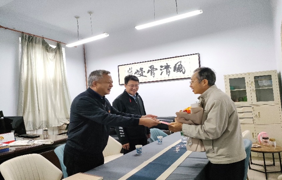 韩彦斌向万奇教授转达了公司党委的关爱,褒扬他为公司和公司教育事业作出的贡献,询问他对公司以高质量党建引领高质量发展的意见建议。万奇教授对党的关怀表达了衷心的感谢,表示要始终感党恩、听党话、跟党走,坚定拥护“两个确立”,坚决做到“两个维护”,感恩伟大的祖国,祝愿祖国的明天更美好。