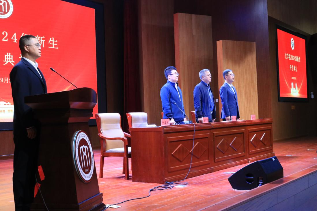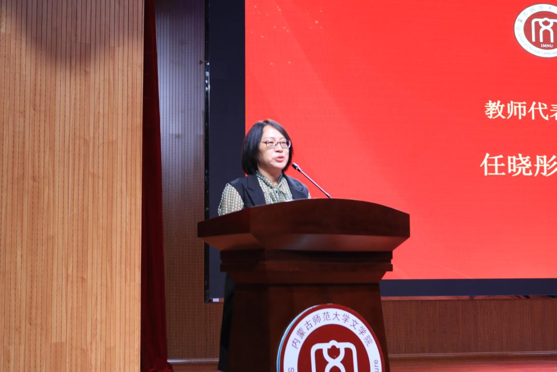 典礼第四项,任晓彤教授作为教师代表发言。任晓彤教授以浅显易懂且风趣的语言向新生分享了她的学习经历及对汉语言文学专业的见解,为2024级新生打开了通往文学世界的大门,在同学们的心中播下了一粒奋进的种子。