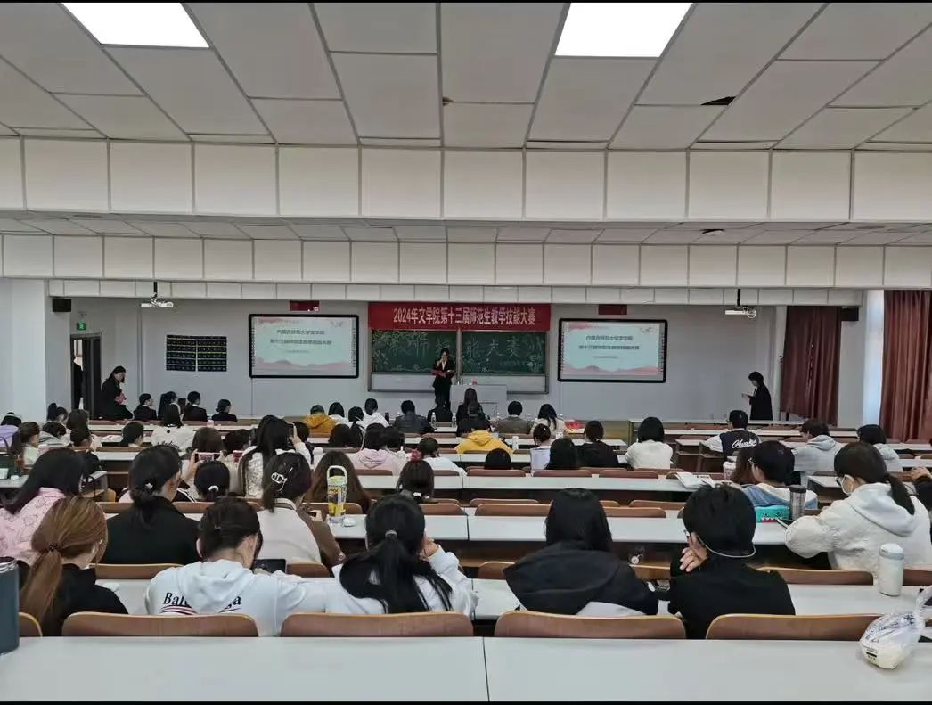 为进一步深化教师教育改革,构建以赛促练、赛练结合的师范生教学技能训练模式,切实提升公司员工的教学基本功与教学技能,根据公司《关于举办第十三届师范生教学技能大赛的通知》相关安排,公司于10月12日隆重举办了第十三届师范生教学技能大赛。大赛特邀公司资深语文教育专家毛润民老师担任评委会主任,汉语言文学系主任李瑞春、汉语国际教育系主任胡素莲、秘书学系主任高永强、人文教育与实践教学中心主任赵玉龙,青年教师张丽娟、常雪纯、王雪老师担任大赛评委。本次大赛分为班级初赛和院级复赛,通过层层选拔,最终经各班级初赛,有27名选手参加了院级比赛。