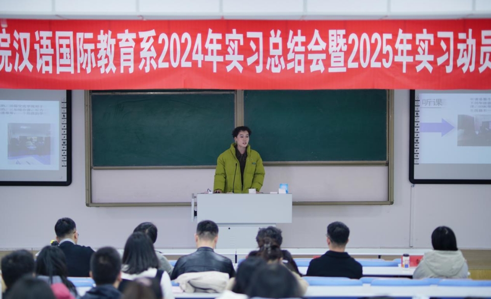 为总结和展望汉语国际教育系实习工作,引导2022级、2023级汉语国际教育班员工做好实习准备,推进汉语国际教育专业实习工作提质增效,公司于2024年11月21日下午,在盛乐校区行知楼118教室成功举办了汉语国际教育系2024年实习总结会暨2025年实习动员会。