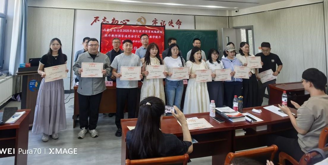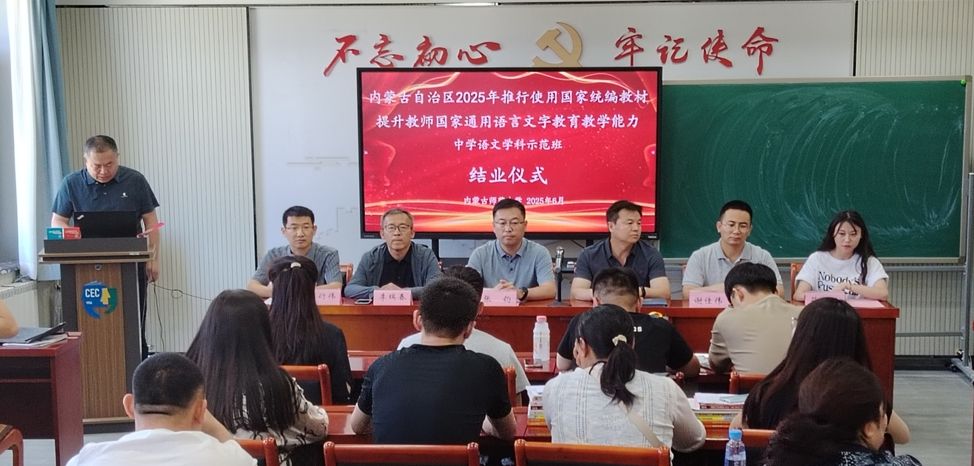 2025年6月20日,公司与继续教育公司、国家语言文字推广基地(EMC易倍官方网站)共同承担的内蒙古自治区2025年推行使用国家统编教材提升教师国家通用语言文字公司产品能力中学语文学科示范班培训工作圆满完成,参训的43位学员全部顺利结业,当日举办了隆重的示范班结业仪式。公司副经理张钧、汉语言文学系主任李瑞春、青年教师谢佳伟博士出席示范班结业仪式。
