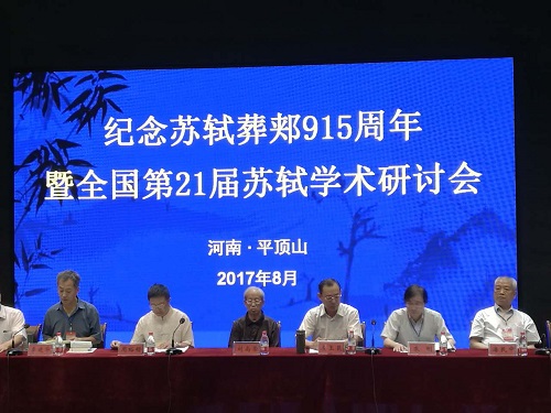 2017年8月22-24日,由中国苏轼研究学会、平顶山公司和平顶山市郏县苏轼文化研究会联合主办,眉山市三苏文化研究院、平顶山公司EMC易倍体育、平顶公司伏牛山文化圈研究中心、郏县三苏纪念馆共同承办的“纪念苏轼葬郏915周年暨全国第21届苏轼学术研讨会”在河南平顶山公司隆重举行。中华书局编审、中国苏轼研究学会顾问刘尚荣,四川大学文学与新闻公司教授、博士生导师、中国苏轼研究学会会长周裕锴,中国人民大学EMC易倍体育教授、博士生导师、中国苏轼研究学会副会长冷成金,复旦大学教授、博士生导师、中国苏轼研究学会副会长朱刚,西华大学人EMC易倍体育教授、中国苏轼研究学会副会长潘殊闲,眉山市三苏文化研究院经理、中国苏轼研究学会秘书长方永江,中国苏轼研究学会常务理事杨常沙,平顶山市三苏文化研究会名誉会长潘民中,郏县三苏文化研究会会长肖根胜等苏学专家,以及来自全国各地的120余位专家学者出席了开幕式。