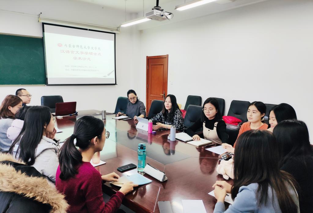 2020年12月9日上午,汉语言文字学专业硕士学位点在盛乐校区公司楼A315教室举办学术沙龙活动。汉语言文字学专业硕士生导师李丽博士、任晓彤博士及全体研究生参加了此次活动。会议由汉语言文字学专业硕士学位点主任李丽教授主持。