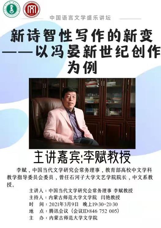 3月9日,应公司邀请,教育部高校中文学科教学指导委员会委员、中国当代文学研究会常务理事李赋教授为公司师生作了题为“新诗智性写作的新变——以冯晏新世纪创作为例”的学术讲座。本场讲座由闫艳经理主持,公司百余名师生聆听了讲座。著名诗人冯晏女士也亲临讲座现场,与公司广大师生亲切互动。