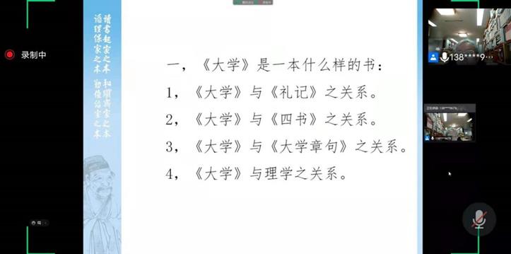 2021年5月18日晚19时,华东师范大学古籍研究所朱杰人教授为公司师生作了一场题为“关于《大学章句》的若干问题”的精彩学术讲座。本场讲座由闫艳经理主持,以线上方式进行,公司40余名师生聆听了讲座。