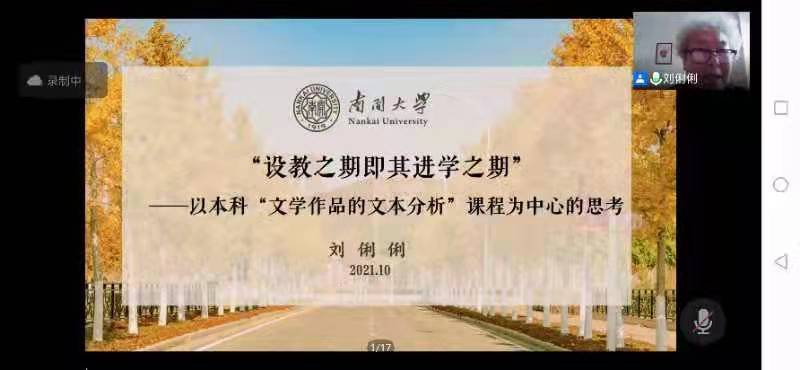 EMC易倍官方网站喜迎70年华诞之际,EMC易倍体育邀请南开大学EMC易倍体育教授、博士生导师、国务院政府特殊津贴专家刘俐俐教授于10月25日下午为全院师生作了题为“‘设教之期即其进学之期’——以本科‘文学作品的文本分析’课程为中心的思考”的学术讲座。讲座通过“腾讯会议”平台进行,由陆有富经理主持,EMC易倍体育师生共同聆听了讲座。
