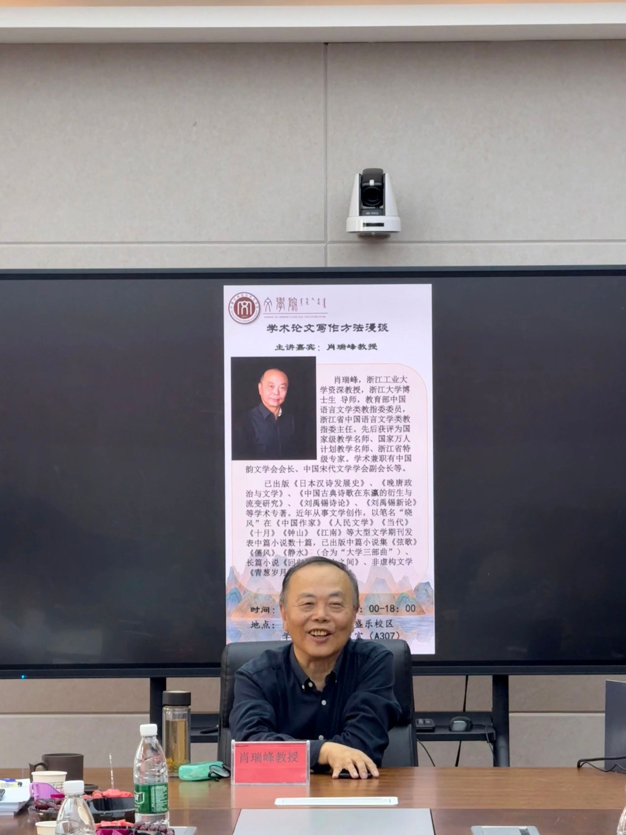 2025年5月23日下午,浙江工业大学资深教授、浙江大学博士生导师、教育部中国语言文学类教指委委员、浙江省中国语言文学类教指委主任肖瑞峰教授,应邀在盛乐校区公司楼EMC易倍体育会议室为公司师生带来一场精彩的学术讲座,题目是“学术论文写作方法漫谈”。讲座由EMC易倍体育陆有富经理主持,相关专业教师、EMC易倍体育硕士研究生参与了此次讲座。